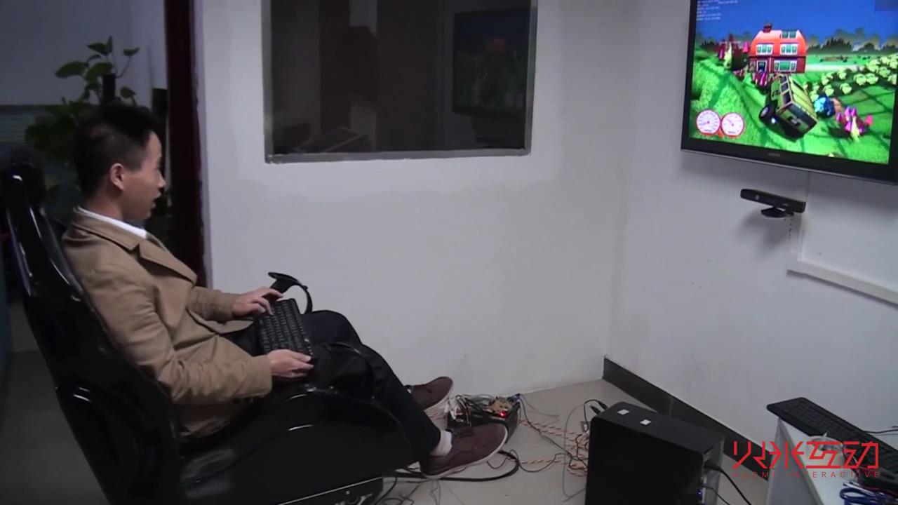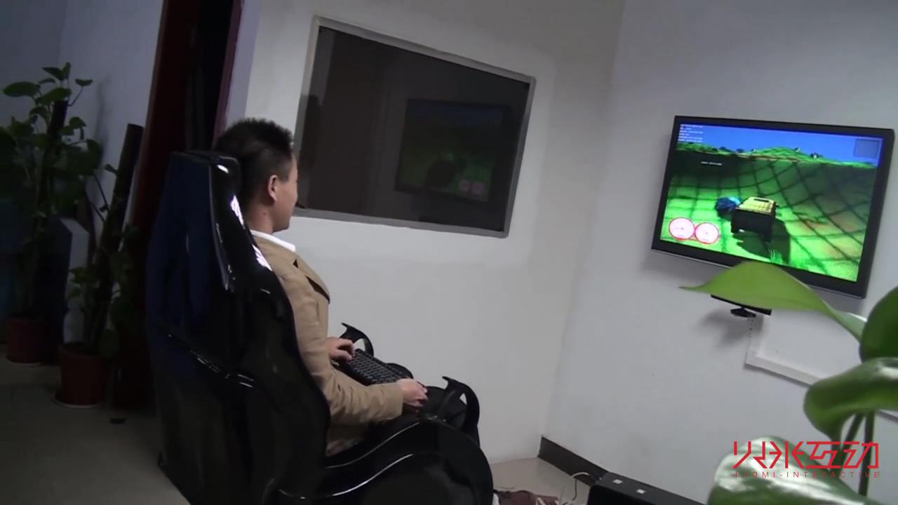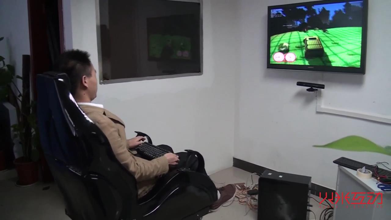 視頻中展示的是4D影院中的動(dòng)感座椅,根據(jù)游戲的故事情節(jié),由計(jì)算機(jī)控制做出特技效果,可以帶來震動(dòng)、顛簸等特效。從而調(diào)動(dòng)了認(rèn)得感知系統(tǒng),使參與者仿佛真的參加了這個(gè)游戲,非常驚險(xiǎn)刺激,帶來身臨其境的體驗(yàn)感。